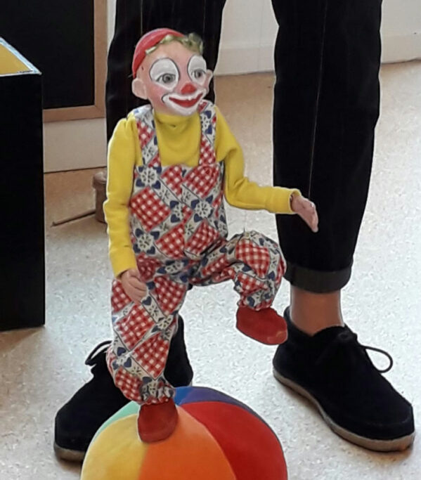 Daarna komt Pedro uit de kist, het allerkleinste clowntje van de hele wereld.